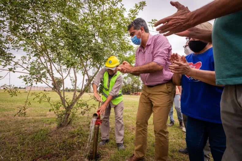 Al respecto, el Gobernador reparó en que "hoy, Sáenz Peña tiene provisión de agua, y se trabaja para tener una distribución ecuánime, equilibrada y equivalente en cada una de las redes y en los barrios. Asimismo, recordó que "las obras macro se han podido ejecutar y estas permiten llegar a más gente, más rápidamente".