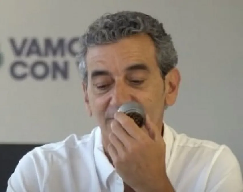 "Es como un pimentero", señaló el dirigente peronista, tras lo cual uno de sus colaboradores le aclara que "es para picar faso". Al introducirse en la cuestión de la legislación vigente en la materia, Randazzo señaló que "es un tema que es complicado".
