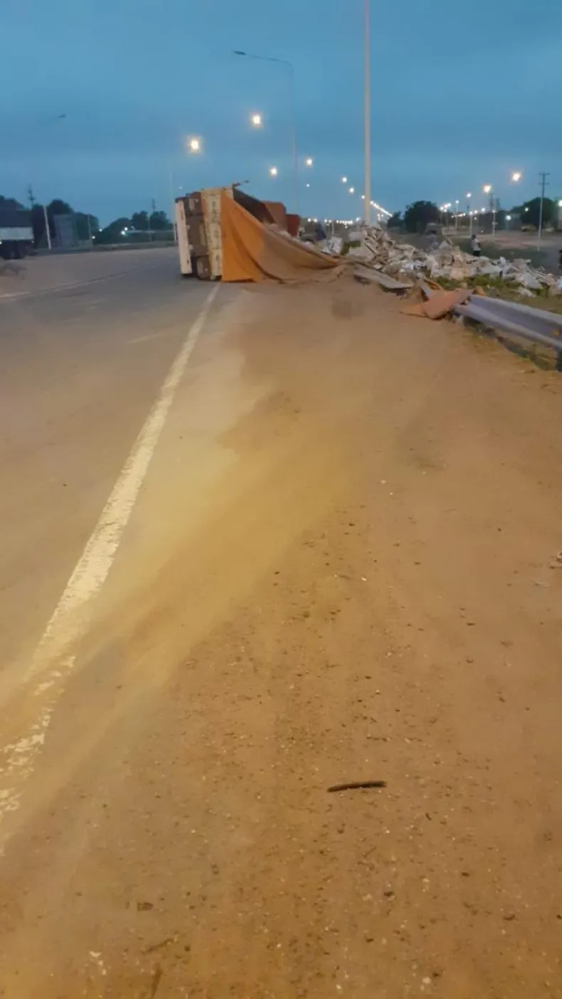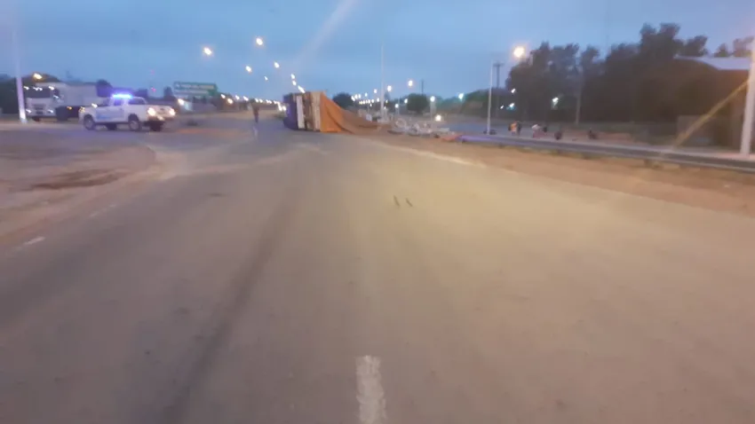 Este martes a las 6 de la mañana, en Ruta Nacional N°16 y acceso oeste se produjo un accidente de tránsito que tuvo como protagonista a un camión con acoplado que transportaba cajones de bananas y que terminó volcado sobre su lateral derecho en la cinta asfáltica.