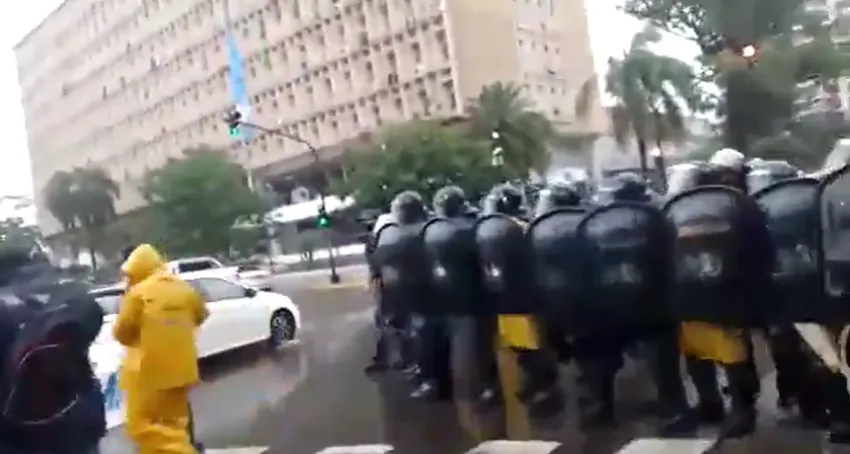Un grupo de no más de 10 personas interrumpió el tránsito esta mañana mientras llovía e inmediatamente la Policía los desalojó.