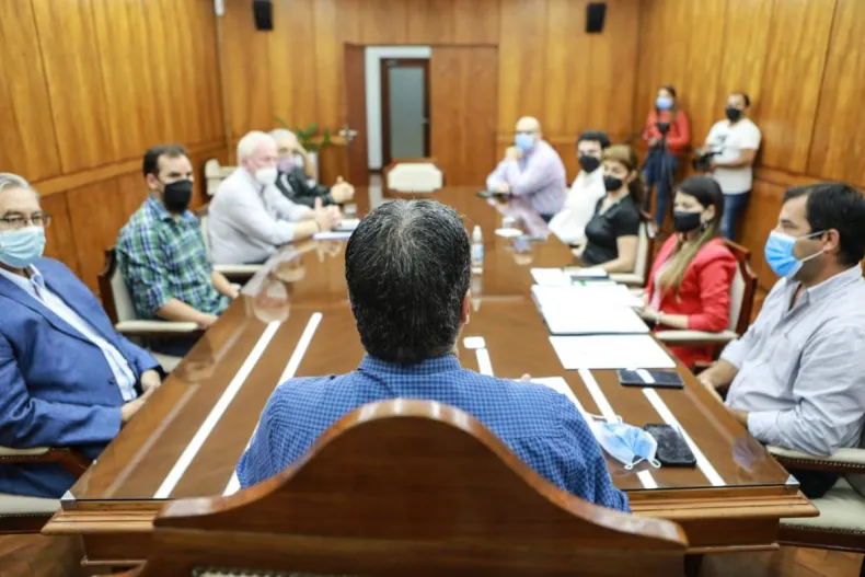 El gobernador Jorge Capitanich y el ministro de Producción, Industria y Empleo, Sebastián Lifton se reunieron con integrantes de la Cámara de Supermercados, Autoservicios y Afines del Chaco. En la oportunidad, trabajaron sobre una propuesta de congelamiento de precios para formar una canasta básica regional. Además, avanzaron en el cumplimiento de la Resolución N° 1050 de la Secretaría de Comercio Interior de la Nación sobre precios cuidados