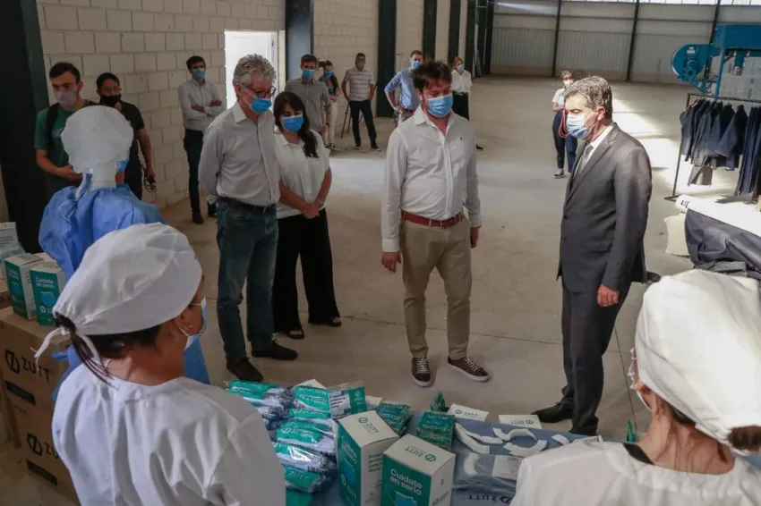 "Es un día muy importante para la empresa porque tenemos el honor de comunicar que vamos a ampliar nuestra capacidad productiva", expresó Rodrigo Ojeda, referente de la empresa. Zutt protect -una marca de la empresa Punto medio- fabricará camisolines, cofias y cubrecalzados a gran escala superando el millón de unidades mensuales e incorporará una nueva línea de producción con la marca Origen.