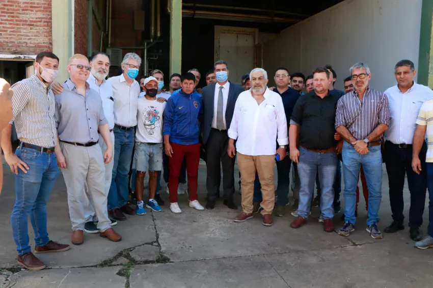 El gobernador Jorge Capitanich y el ministro de Industria Sebastián Lifton acompañaron, este viernes, al titular del Frigorífico Toba Carlos Sciffo que reabrirá su planta ubicada en el Parque Industrial de Puerto Tirol en marzo de 2022. "Es una muy buena noticia que generará más de 400 empleos en forma progresiva", subrayó el mandatario y precisó que será un frigorífico de base exportadora.