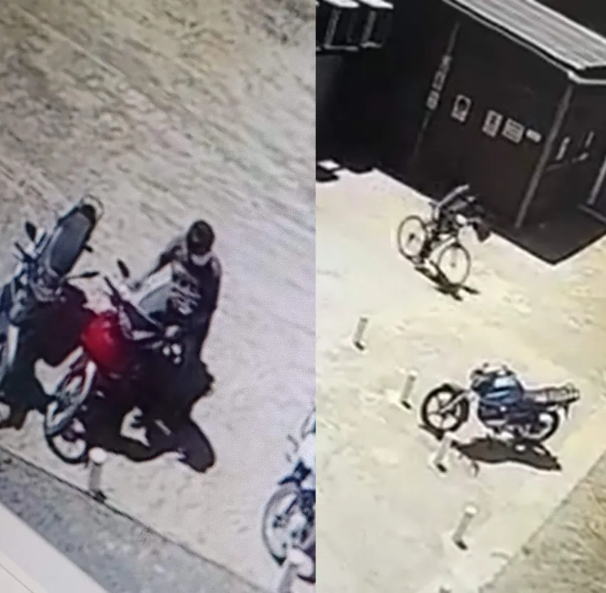 En imágenes se puede observar como el sujeto en un primer lugar se acerca hasta un portón entreabierto que da acceso a la empresa, lugar donde se encontraban varias motos e incluido una bicicleta color negro.