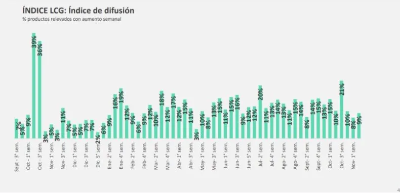 Al parecer, de acuerdo con la encuesta de LCG, el congelamiento tuvo efecto en la última semana de octubre, porque mostró el índice una caída de 0,3%. Luego en la primera de este mes subió 0,2%.