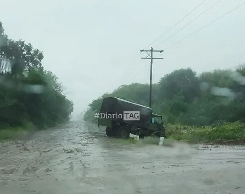 Las inclemencias del tiempo y las intensas lluvias han perjudicado varios caminos, sobre todos los de calles de tierra y en zonas rurales. Es por ese escenario que un camión del Ejército Argentino perdió el control y terminó en una zanja.