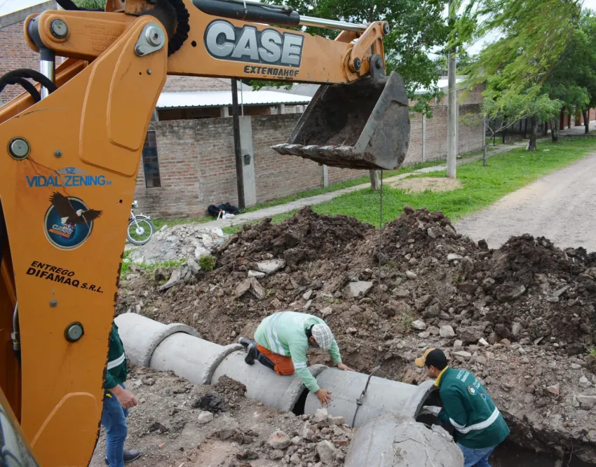 En este barrio se trabajó en los canales secundarios, redes, cruce de calles, con reparaciones y recambio de tubos. "El objetivo es que el sistema funcione, respetando la pendiente natural".