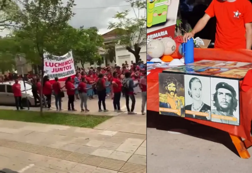 Esta mañana, días después del escándalo que se desató durante una muestra que se realizó en el colegio Don Bosco , que terminó con padres retirando a sus hijos y echando a docentes y alumnos de la escuela de Emerenciano Sena, movimientos sociales realizaron una protesta frente a la institución en avenida Italia.