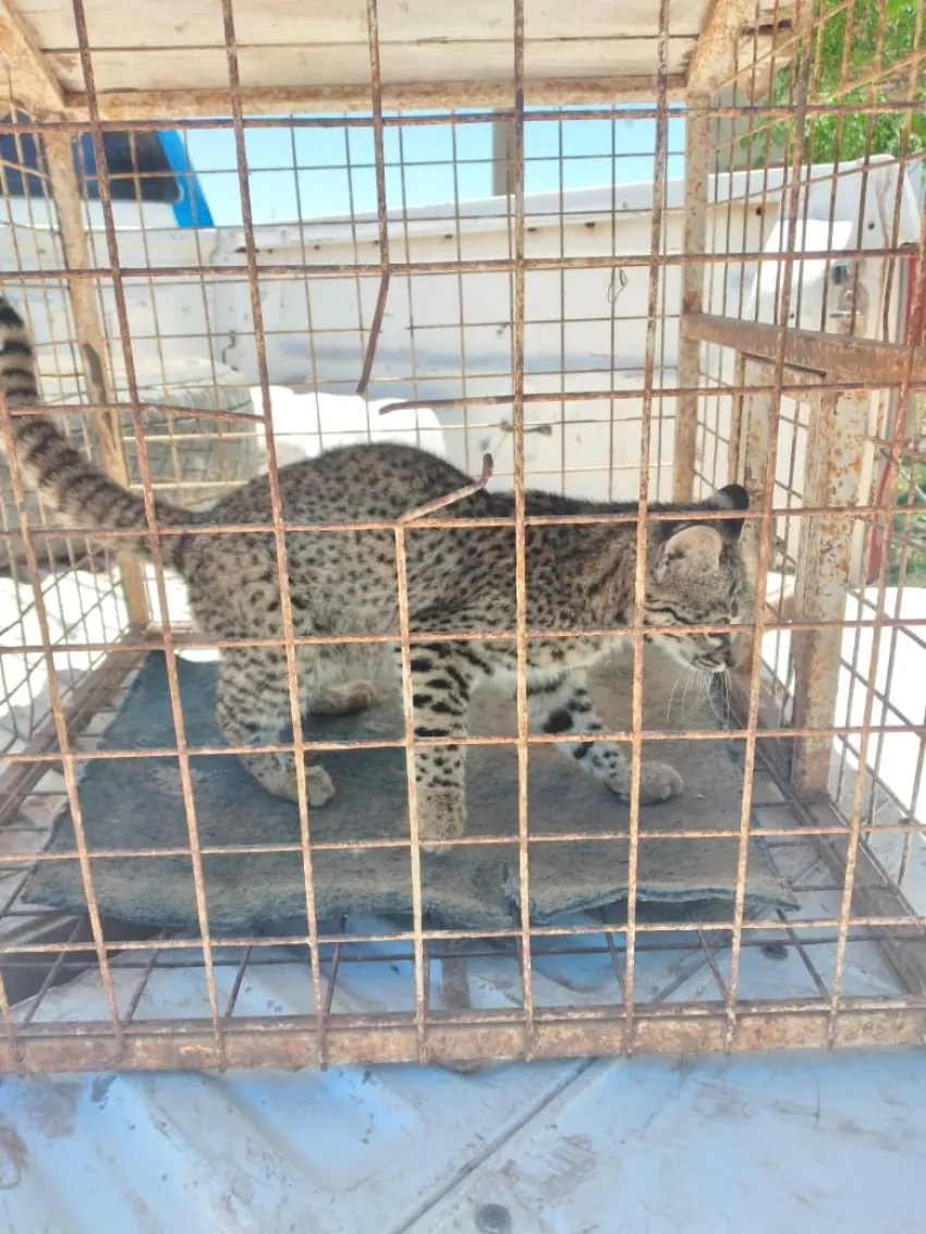 En horas de la siesta, alrededor de las 14 horas, los policías de la Sección Rural tomaron conocimiento de un posible animal que estaba en cautiverio y que además se trataría de un gato montés.