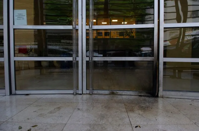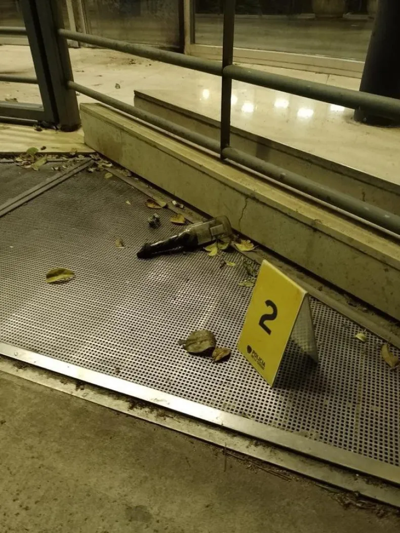 No hubo heridos, tampoco daños materiales, aunque las manchas del combustible utilizado y los rastros del fuego quedaron registrados en el frente del edificio.