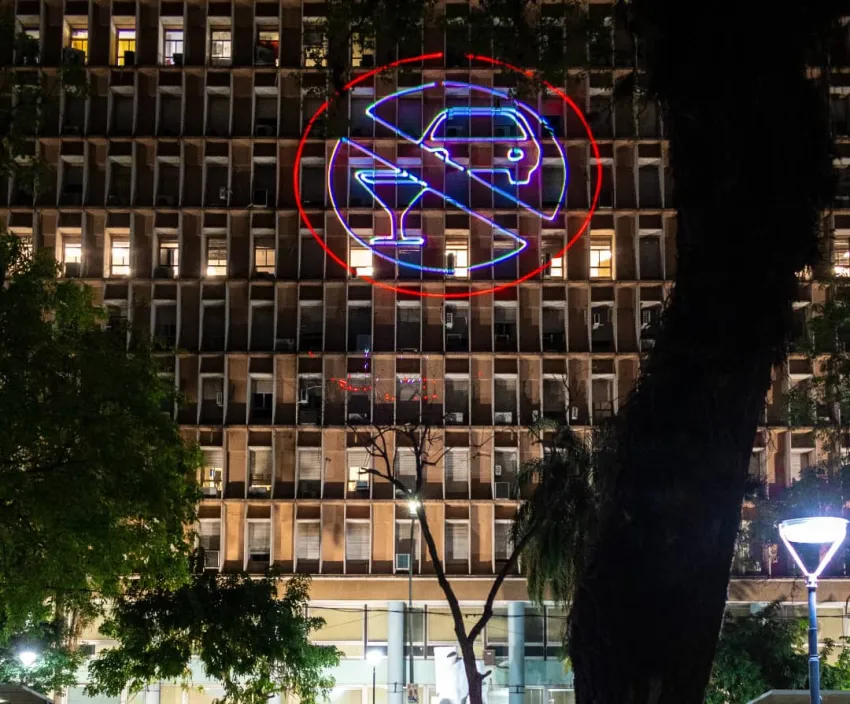 El Ministerio de Seguridad y Justicia realizó este domingo intervenciones en conmemoración al Día Mundial de las Víctimas de Siniestros Viales que se realiza cada tercer domingo de noviembre. En la noche, una de las paredes de Casa de Gobierno se iluminó con símbolos alusivos que buscaban sensibilizar sobre la temática. Además, se repartieron folletos con las normas de tránsito y seguridad vial.