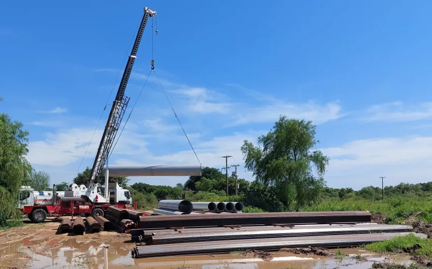 "Con estos caños camisas y las tablestacas haremos el pilotaje de los espigones transversales al río que, junto con la colocación del tablestacado frontal, protegerán al barrio de la erosión continua que provoca el río Paraná", explicó acompañado por el secretario Técnico Oscar Tonzar, y Andrés Comisso, de la misma área.
