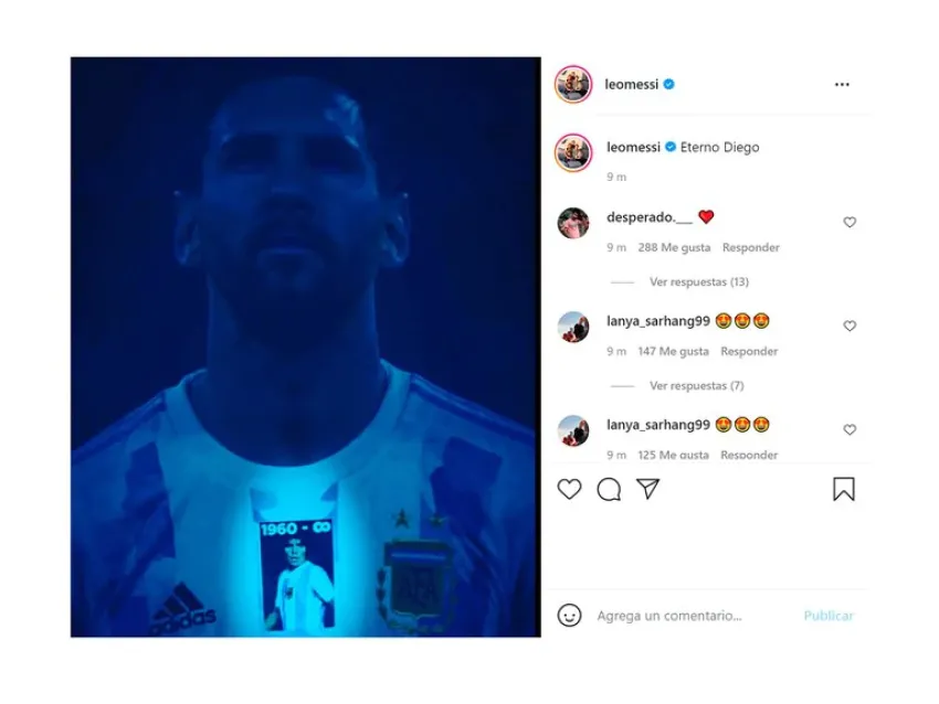 "Eterno Diego", escribió el ex Barcelona en una publicación que acompañó de una imagen suya con la camiseta especial que la Albiceleste vistió en junio cuando enfrentó a Chile en Santiago del Estero por las Eliminatorias. Esa fue la primera ocasión que la Selección disputaba un encuentro oficial desde la partida de Maradona y por eso se le colocó a la casaca un parche con la imagen del astro.