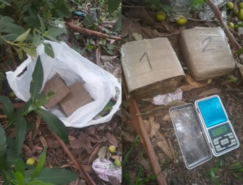 Por esto, al verificar la bolsa abandonada, se constató que su interior tenía dos trozos rectangulares con una sustancia vegetal color verde amorronado, característica a la Marihuana, por lo que se presentó en el lugar personal idóneo de Drogas, quien realizó la prueba de campo, arrojando como resultado 733.7 gramos de Cannabis Sativa.