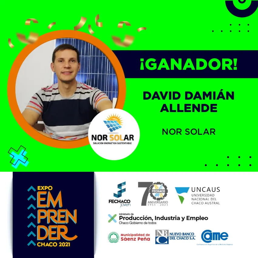 David Damián Allende, de la empresa "NorSolar" y socio de la Cámara de Comercio, Industria, Producción y Servicios de Pampa del Infierno se consagró como el nuevo Joven Empresario del Año.