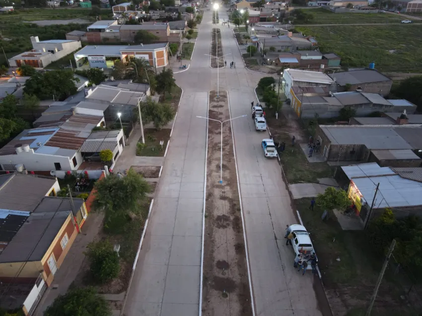La obra ejecutada por la Dirección de Vialidad Provincial incluyó la construcción de calzada de hormigón con cordón integral y desagües pluviales.
