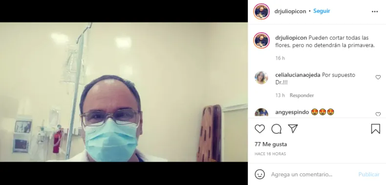 Ahora, ¿fue realmente esa fotografía el motivo por la suspensión de la cuenta o hubo algo más?; Lo que, si se puede saber, es que el doctor Picón se trasladó rápidamente a Instagram, donde allí hizo un posteo "Pueden cortar todas las flores, pero no detendrán la primavera".