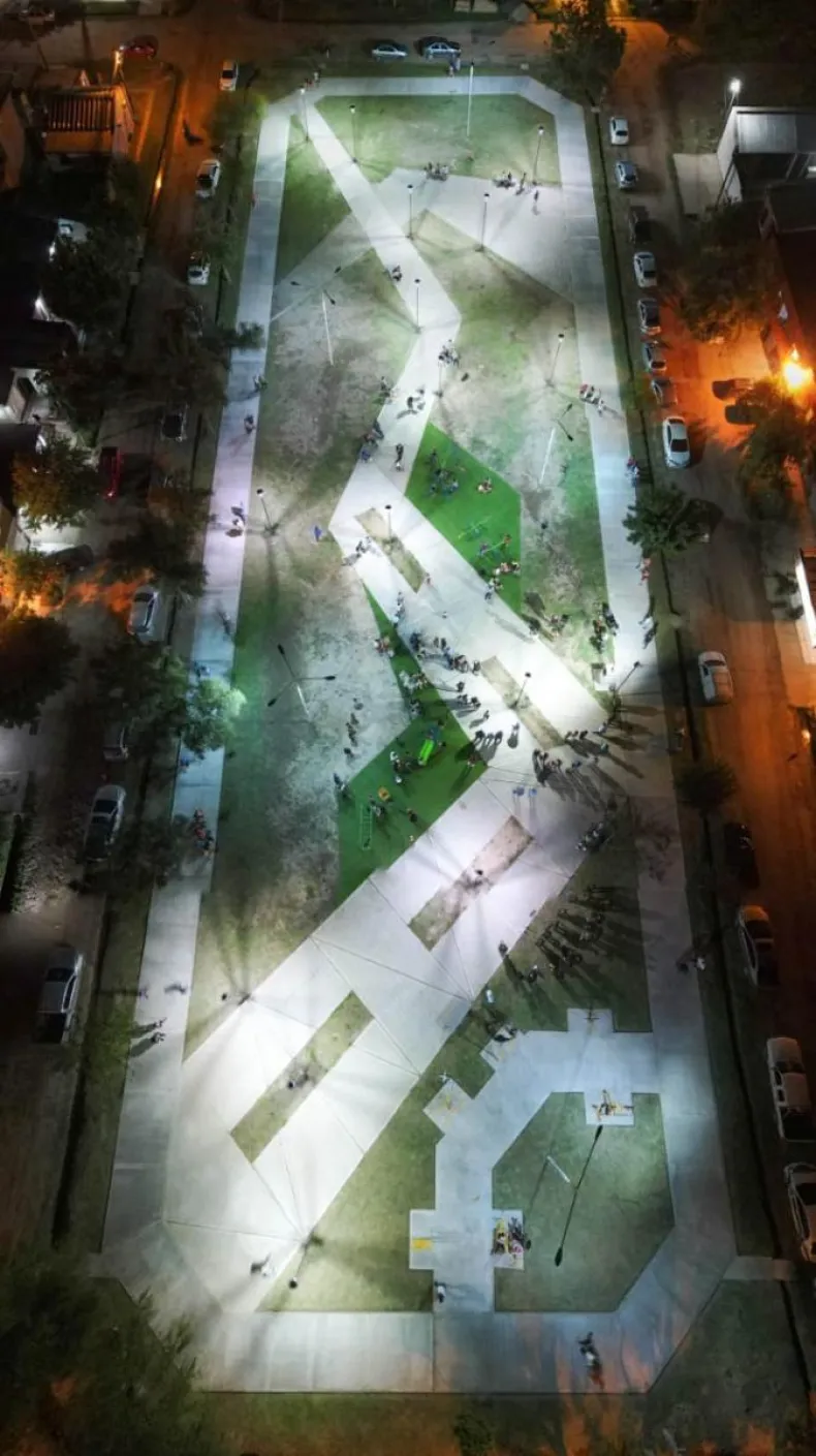 La nueva plaza que abarca las calles 36, 38, 23 y 23 bis del barrio Ramseyer, cuenta con sendas peatonales y plataforma de hormigón, mobiliario urbano, juegos infantiles y aeróbicos. Además, se colocaron 18 columnas simples y 6 triples de iluminación led, se cambiaron las lámparas de las columnas existentes y se complementó el trabajo con forestación y parquizado.