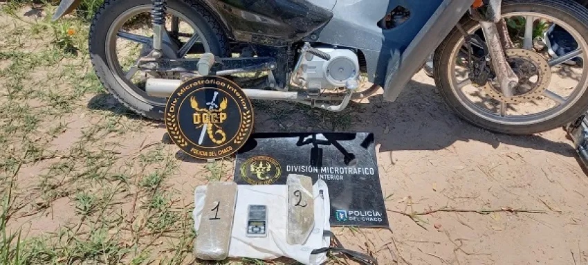 De la requisa a las personas detenidas se pudieron incautar 2 envoltorios rectangulares de marihuana, popularmente conocidos como "panes", que pesaban 1.274 gramos, una pequeña balanza digital gris, un teléfono celular, una bolsa y la moto.