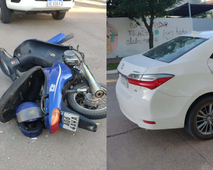 Este viernes, en horas de la tarde, un automóvil y una motocicleta fueron protagonistas de un accidente de tránsito sobre las calles Moreno y 9 de Julio en la localidad de Fontana.