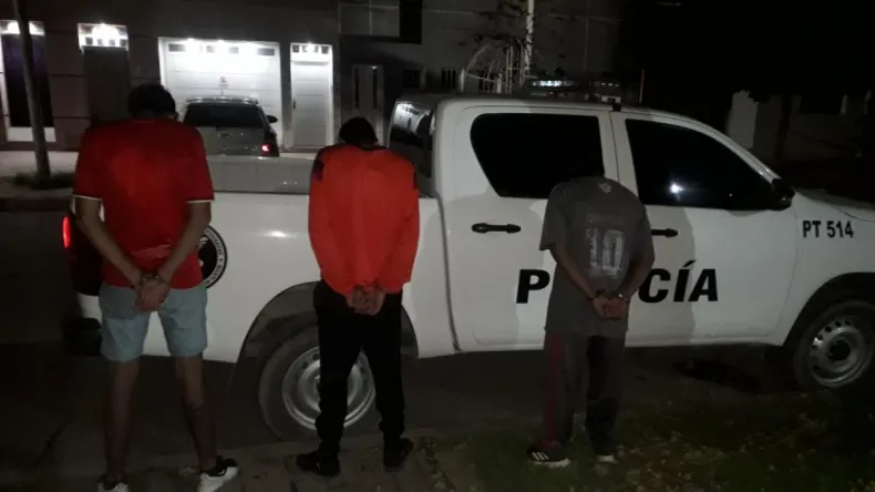 Hasta la calle 23 entre 22 y 24 del barrio Milenium arribó personal del Grupo COM tras tomar conocimiento del hecho y procedieron a la detención de los tres violentos, dos de ellos con domicilio en el barrio Hipólito Irigoyen y uno en el Milinium. En poder de los mismos la policía secuestró un arma blanca y una motocicleta marca de 110 cc.