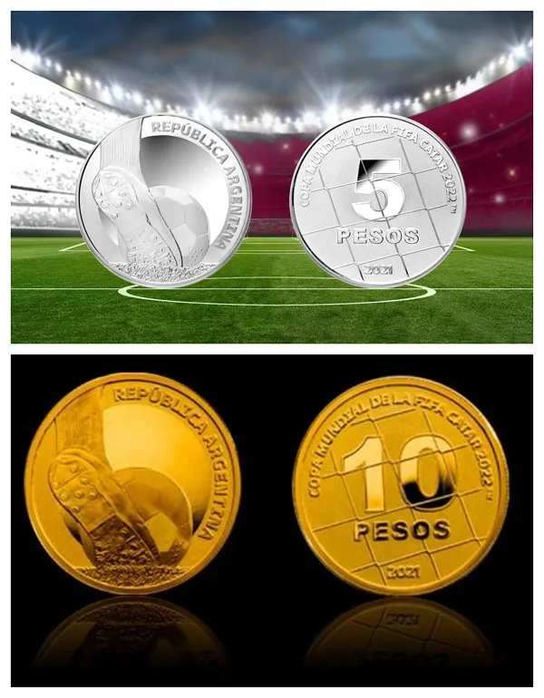 El Banco Central de la República Argentina (BCRA) emitió una moneda de plata alusiva a la Copa Mundial de Fútbol en Catar, en el marco de los Programas de Monedas Conmemorativas de los Mundiales. La acuñación de esta pieza remite a la 22ª edición de la Copa que se realizará en los meses de noviembre y diciembre del 2022 en el país asiático.