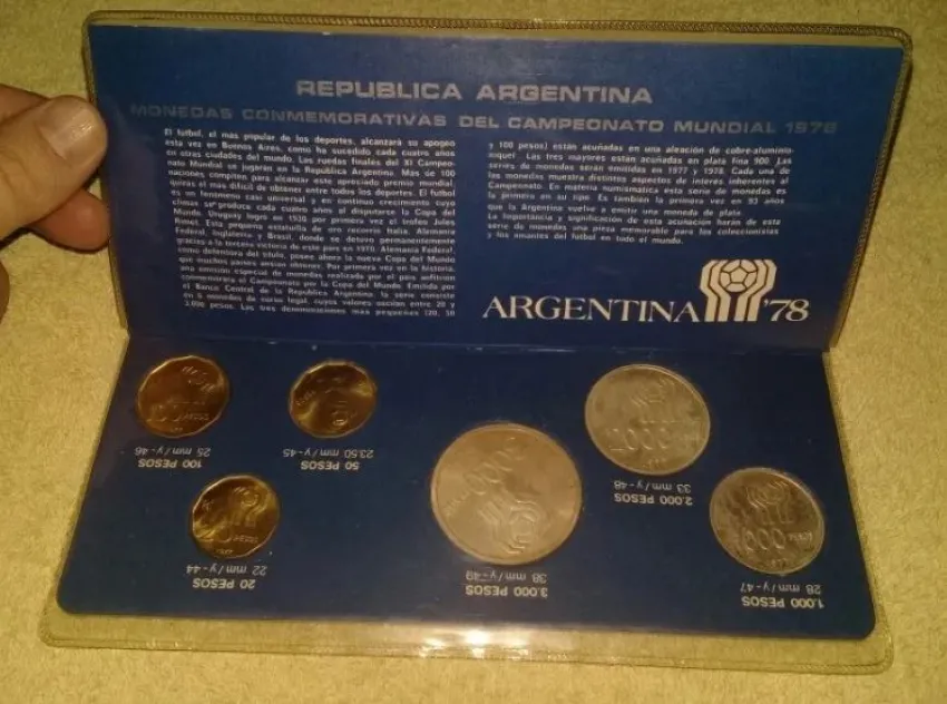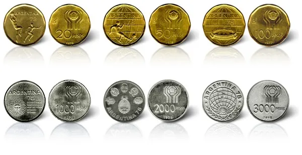 En 1978 se lanzaron dos series de monedas, de cobre y de plata, de 20, 50, 100, 1000, 2000 y 3000 pesos conmemorativas a la Copa Mundial que se realizaba en Argentina. La importancia y significación de esta acuñación, única en la historia sobre un evento deportivo, hacen de estas piezas una serie memorable para los coleccionistas y amantes del fútbol.