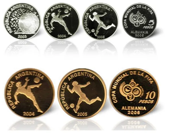 Después de 28 años sin acuñar monedas referidas al Campeonato Mundial de la FIFA, el directorio del BCRA aprobó la participación de la Argentina en el "Programa Oficial de Monedas Conmemorativas de la Copa del Mundo de la FIFA de 2006 de Alemania", de las que se emitieron 7000 monedas de plata con cuños 2003, 2004 y 2005, y monedas de oro con cuños 2004 y 2005.