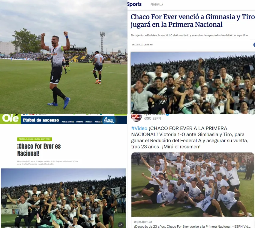 Chaco For Everun club con mucha historia y conocido a nivel nacional llevó la alegría de muchos futboleros que estaban esperando este momento de regreso a la segunda categoría del fútbol argentino, "categoría en la que el negro no se tuvo que ir nunca", reflejaron los simpatizantes y hasta inclusive hasta los medios nacionales que se hicieron eco de esta consagración albinegra.