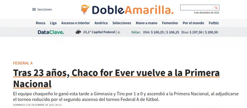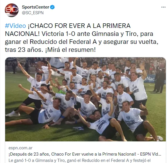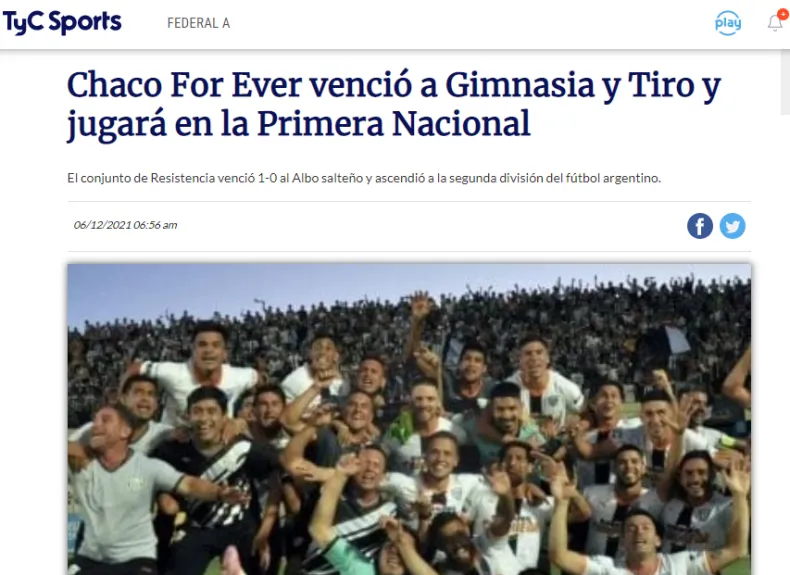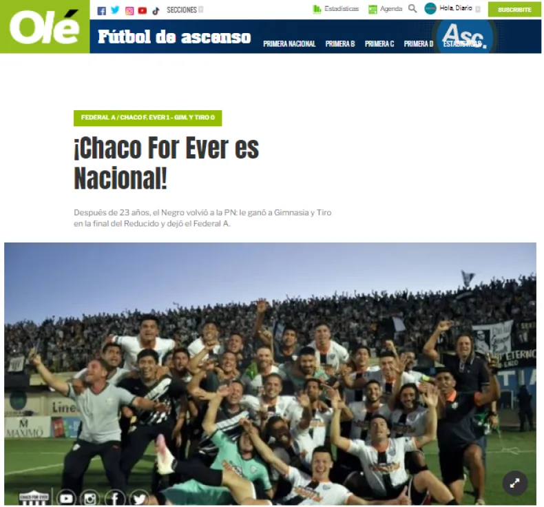 De esta manera y tras derrotar a Gimnasia y Tiro de Salta por 1 a 0 a con gol de Emanuel Díaz, desde los doce pasos, For Ever obtuvo el pasaje de regreso al viejo Nacional B. En ese sentido los medios nacionales no tardaron en hacerse eco y así reflejaron la consagración del club más convocante de la provincia.
