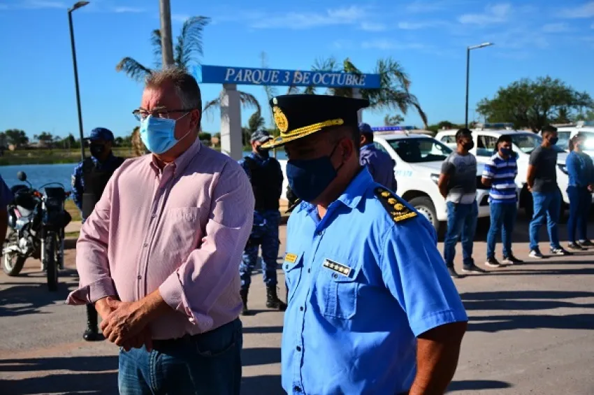 El Intendente de Castelli, Pío Sander, junto al Director de Zona interior Castelli Comisario General Juan Domingo Penayo, el secretario de Gobierno Ismael Pablo Barnes, fuerzas de seguridad y funcionarios municipales presentaron el operativo integral para estas Fiestas de fin de año, el mismo se llevó adelante en el parque 3 de octubre, donde se vio desplegado una gran cantidad de móviles policiales y personal policial.