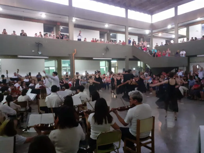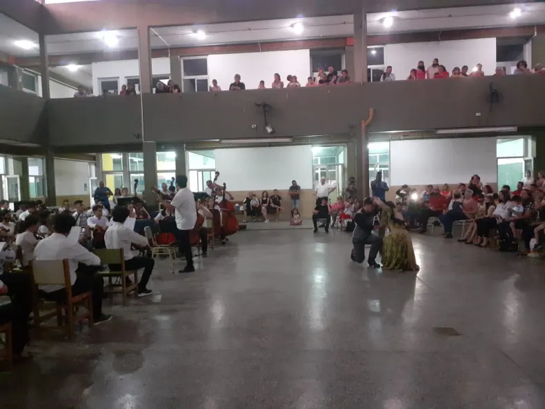 El concierto tuvo música clásica y popular en el amplio patio central del Colegio Industrial de Sáenz Peña, y tuvo como condimento adicional la participación de bailarines del Ispea, del Coro Polifónico de la UEGP N°169, el ISPEA Danza, la Compañía de Experimentación Escénica Descalzos, el profesor Guido Borda y María Victoria Aguirre