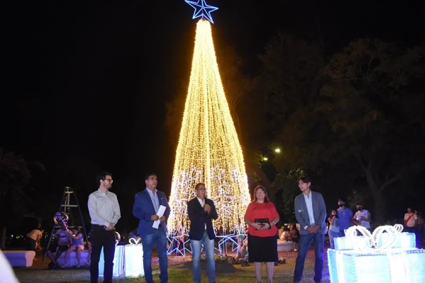 El intendente Gustavo Martínez estuvo presente en el encendido del tradicional árbol de Navidad en la Plaza 25 de Mayo de Resistencia, más precisamente en la intersección de la avenida Alberdi y la calle Juan B. Justo. Esta propuesta es el puntapié inicial de varios árboles navideños que se encenderán en distintos sectores de la Ciudad.