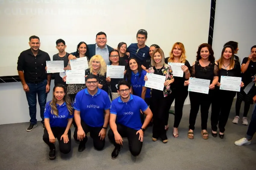 El acto tuvo lugar en el cine del Centro Cultural Municipal, y contó con la presencia del secretario de Desarrollo Humano y Deportes, Germán Rearte; el subsecretario German Arriola; la secretaria de Cultura y Educación Ciudadana, Alicia Gaña, Tomás Avalos y demás funcionarios del municipio.