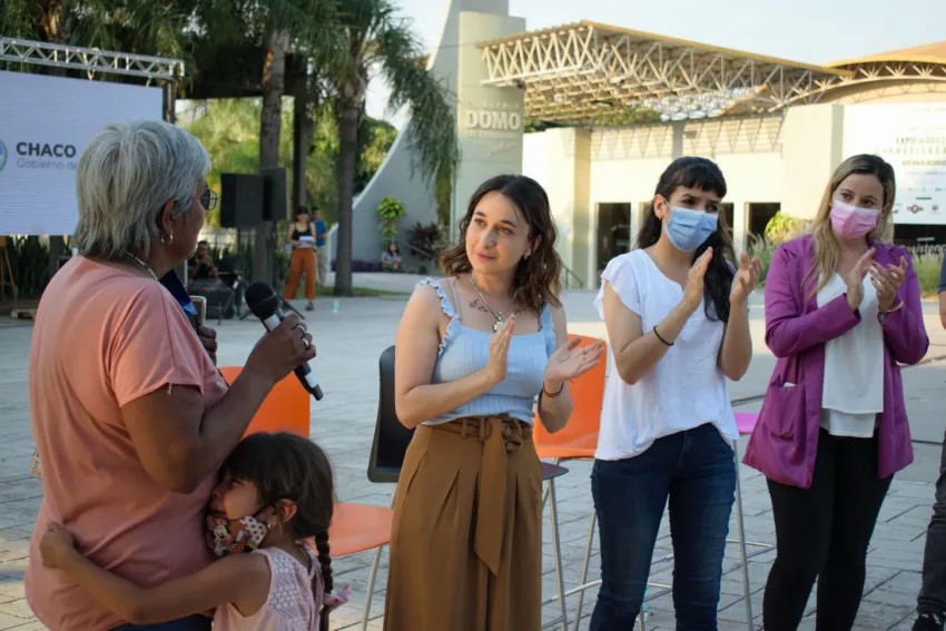 La vicegobernadora Analía Rach Quiroga encabezó, este sábado en el Domo del Centenario, la entrega de 120 tarjetas Tuya Recargable a beneficiarias y beneficiarios del Programa Mejor Techo, Mejor Vida. También participaron la ministra de Desarrollo Social Pía Chiacchio Cavana, el subsecretario de Economía y Políticas Sociales Diego Luna y la directora del Nuevo Banco del Chaco S.A Maia Woelflin.