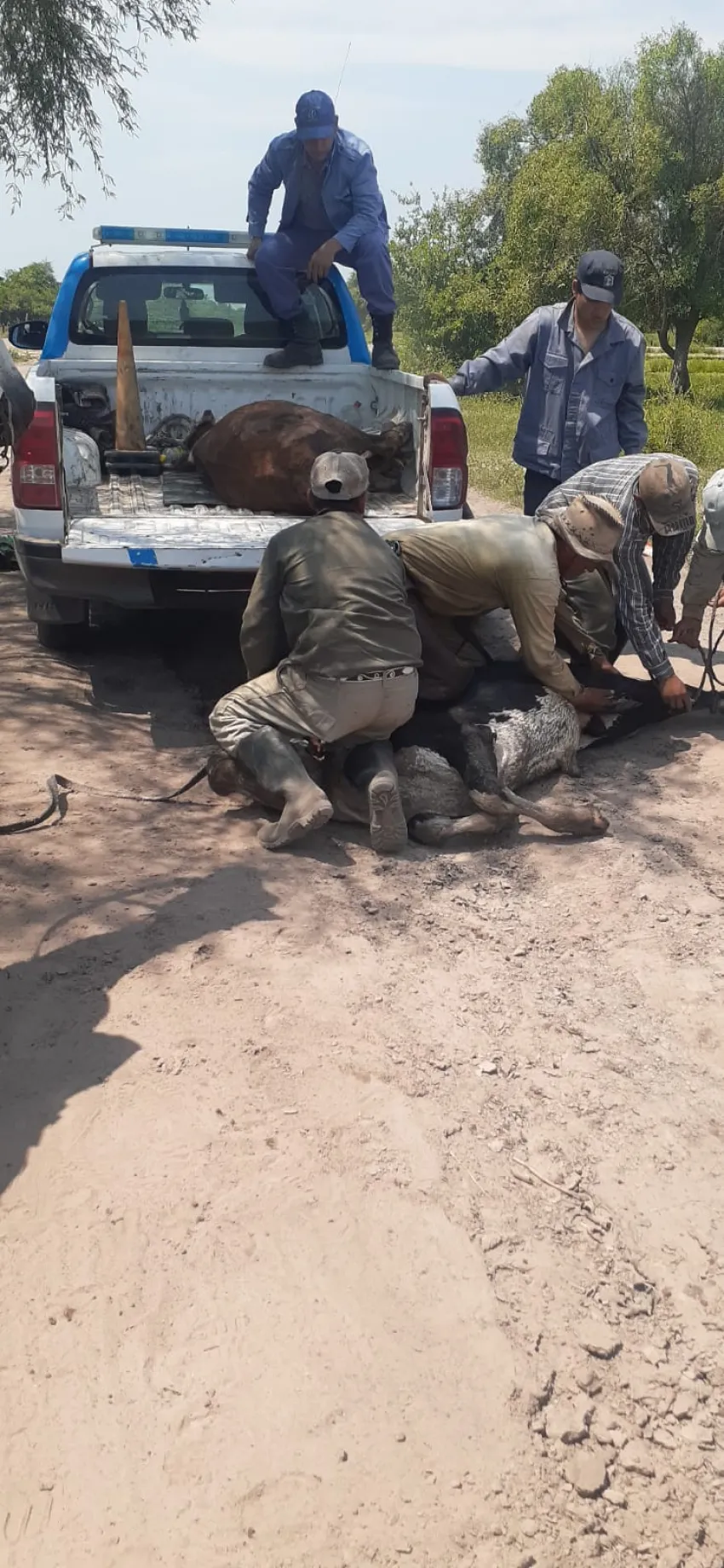 Asimismo, los agentes rurales ingresaron a una zona de montes y en su interior hallaron a dos animales tambeados a un árbol. Allí, se procedió a retirarlos del lugar y el peón del campo reconoció a los vacunos como propiedad de su patrón.