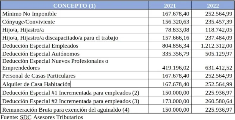 (1) Las deducciones personales de los trabajadores y jubilados que vivan en la zona patagónica se incrementan en un 22%.
