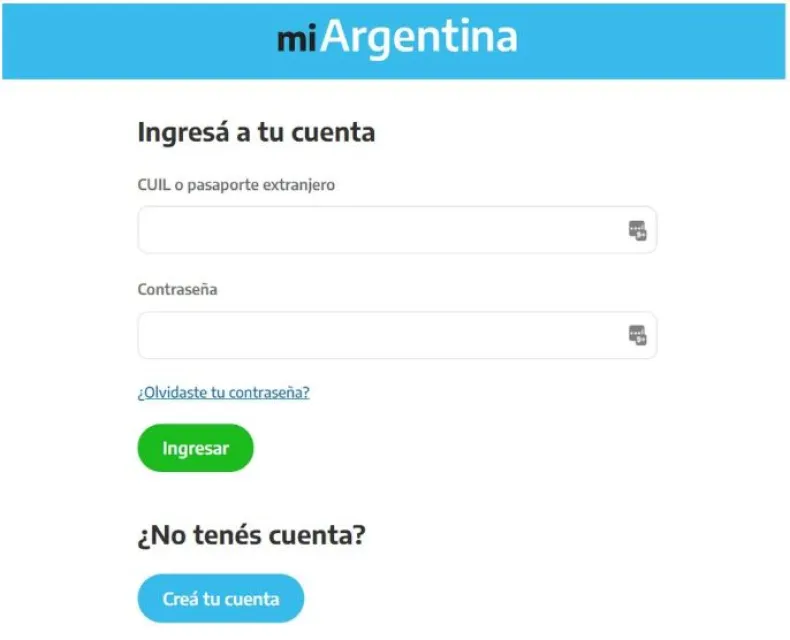 Para poder utilizar la app es necesario contar con correo electrónico, número de CUIL y crédito en el celular o conexión a una red wifi. Luego, hay que ingresar a la tienda de aplicaciones de tu celular, buscar la app Mi Argentina y descargarla. Una vez abierta, hay que presionar el botón "ingresar".