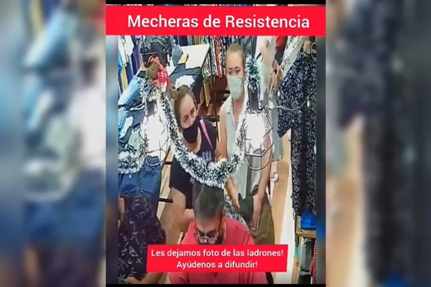 Las cámaras de vigilancia del lugar captaron los momentos en que ambas mujeres coordinaban los movimientos para pasar desapercibidas y así poder robar distintas prendas. Los dueños del comercio publicaron en su cuenta de Instagram dichas imágenes para "alertar a colegas" y difundir la identidad de las mecheras.