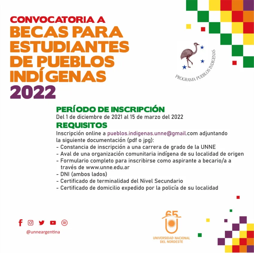 El Programa Pueblos Indígenas (PPI) de la UNNE informa que el período de inscripción para Becas PPI inició el pasado 1 de diciembre del corriente y culmina el 15 de marzo del 2022.