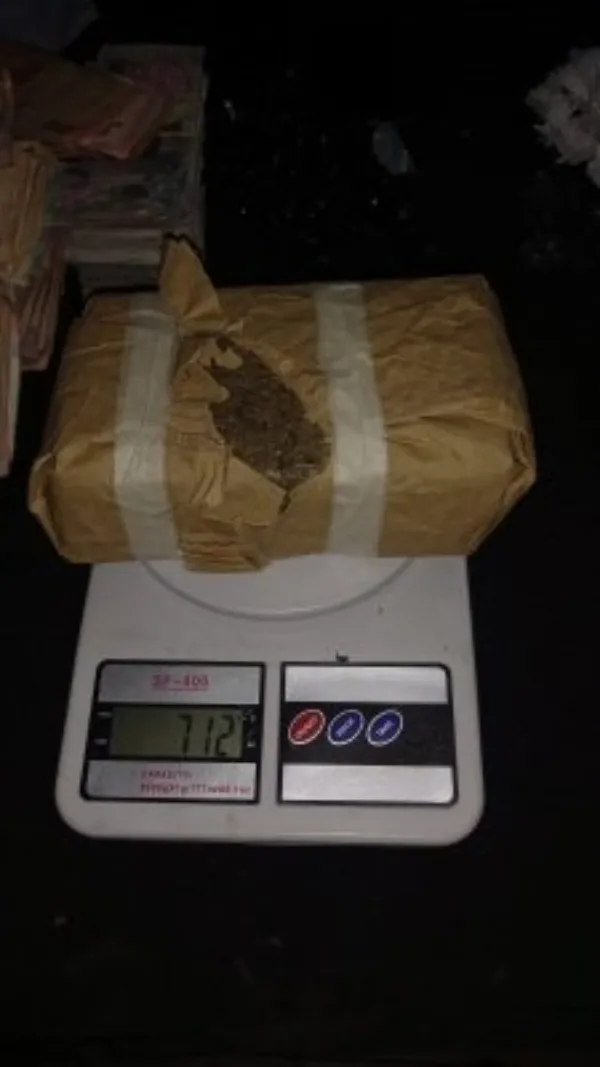 También secuestraron 81 envoltorios con una sustancia verde amarronada que arrojaron un total de 122 gramos y un envoltorio de mayor tamaño tipo pan con la misma sustancia con un peso de 712 gramos ambos arrojaron resultado positivo a marihuana. Además, hallaron varios recortes polietileno, tres teléfonos celulares y la suma de $89.480.