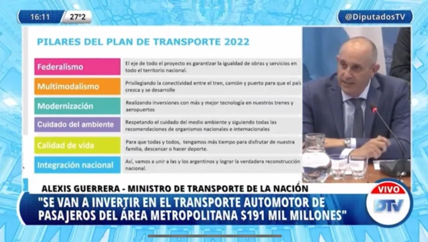 Diputados: el Ministro Guerrera expuso sobre el presupuesto 2022 en materia de transporte