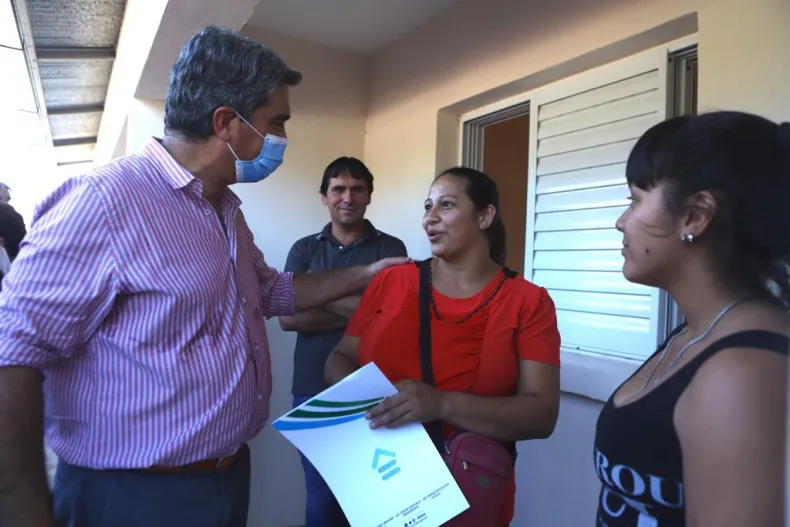 El mandatario también reparó en que se trata de un complejo habitacional "muy interesante" ya que cuenta con conectividad vial, toda la infraestructura educativa (jardín de infantes, escuela y próximamente el Instituto Terciario con múltiples carreras) y con esta entrega "se genera todo un espacio para que su calidad de vida aumente mejore sustancialmente".