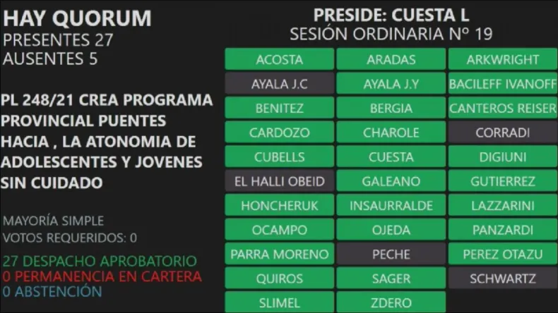 A raíz de la propuesta presentada en marzo del 2021, por la Diputada Clara Pérez Otazú y el Diputado Salvador Jaime Parra Moreno del Bloque Frente Integrador, se aprobó por unanimidad esta iniciativa que tiene por objeto crear un programa provincial como una política constructiva que brinde una herramienta para la formación, autonomía y desarrollo integral de adolescentes y jóvenes que residan en dispositivos alternativos de cuidados en virtud de una medida de protección de derechos en el marco de la ley provincial 2086-C, y en la base de la promoción y protección de derechos resulta requisito indispensable el acompañamiento para el Egreso de estos espacios, es decir, de aquellos adolescentes y/o jóvenes próximos a egresar de los Espacios Convivenciales Alternativos (ECA).