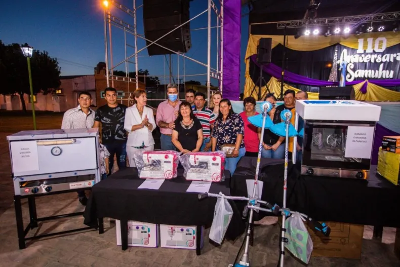 Durante el acto central en Samuhú, Capitanich también encabezó la entrega de diferentes kits de herramientas y maquinarias para emprendedores de la localidad, enmarcados en el programa Emprendemos Todxs. "Estamos muy agradecidos con nuestros emprendedores, a quienes pudimos garantizar durante esta gestión la provisión de 7000 kits para las personas inscriptas en el registro de economía popular, y vamos a continuar por este camino", sostuvo.