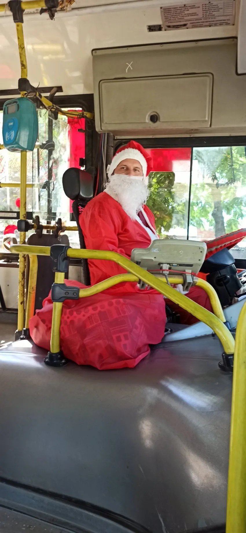 Un chofer de la línea 101 de Resistencia se disfrazó de Papá Noel para alegrar a los pasajeros