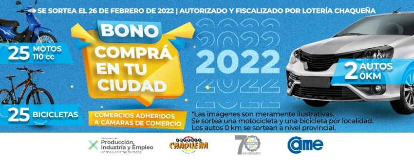 De esta manera, la Federación Económica del Chaco (FECHACO) junto al Ministerio de Producción, Industria y Empleo de la provincia y Lotería Chaqueña convocan a la comunidad a sumarse de la 3º edición del Bono "Comprá en tu Ciudad", organizada por la entidad empresaria.