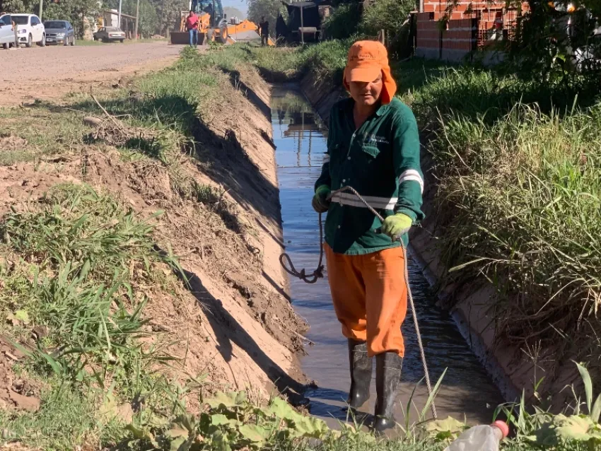 Luis Alonso, subsecretario de Servicios, explicó: "Seguimos con este plan nacido en junio del año pasado, en este caso en el conducto revestido del barrio Mujeres Argentinas". "Es una intervención en un canal que recibe las aguas pluviales y escurre a la laguna lindante", indicó.