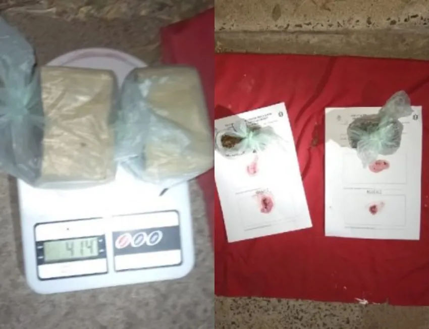 Una vez que lo detuvieron le solicitaron que exhiba sus pertenencias y al abrir su mochila tenía 2 trozos compactos de una sustancia vegetal, la cual luego de la prueba de campo se pudo saber que el resultado fue positivo para cannabis sativa y un pesaje de 414 gramos.