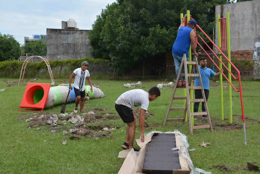 El Municipio coordinó la colocación de juegos infantiles en medio del proceso de revalorización de ese pulmón ambiental llevado a cabo en colaboración con una cooperativa que ejecuta directivas del gobierno nacional en esa temática.